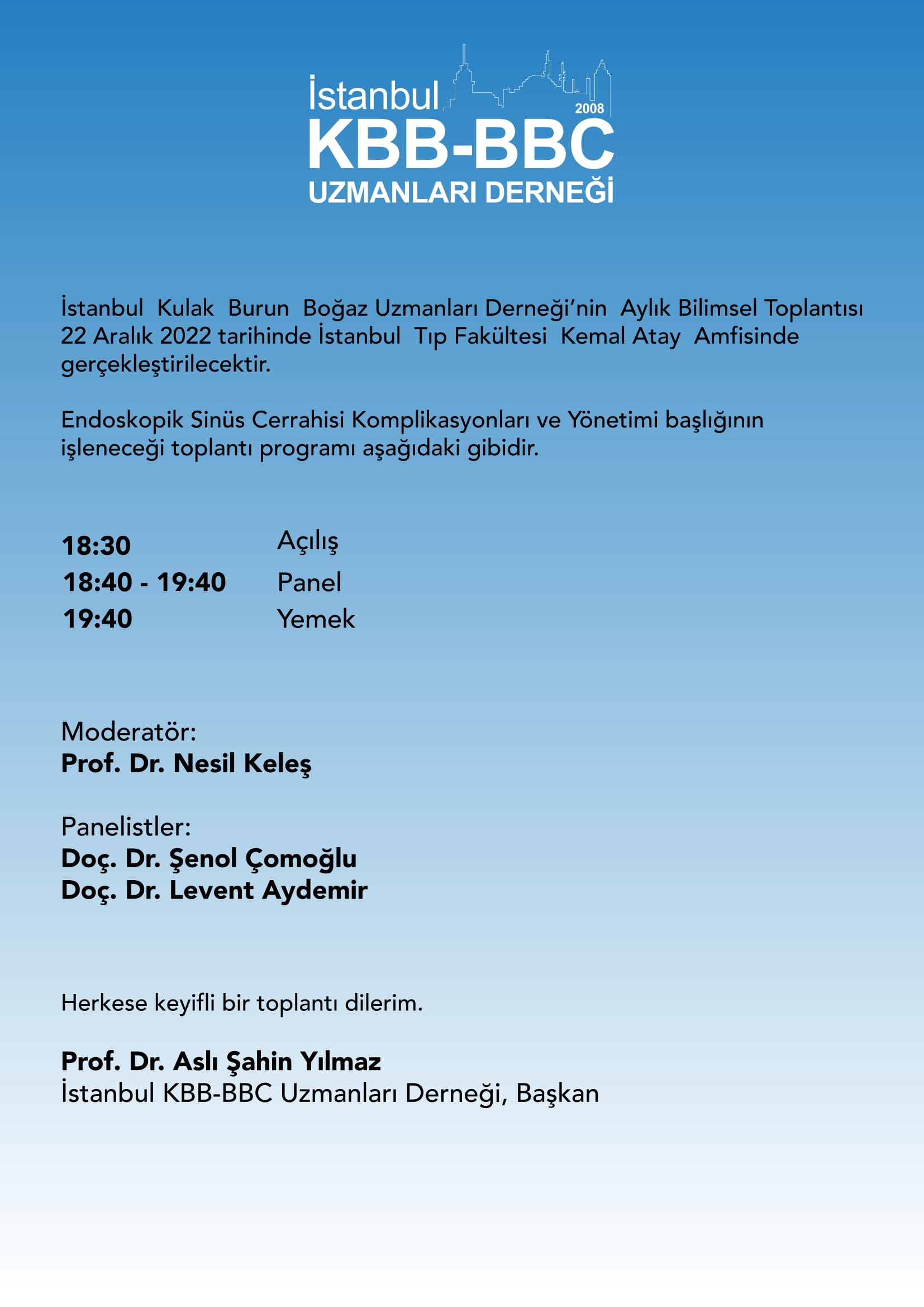 İstanbul KBB ve BBC Uzmanları Derneği Aylık Toplantısı