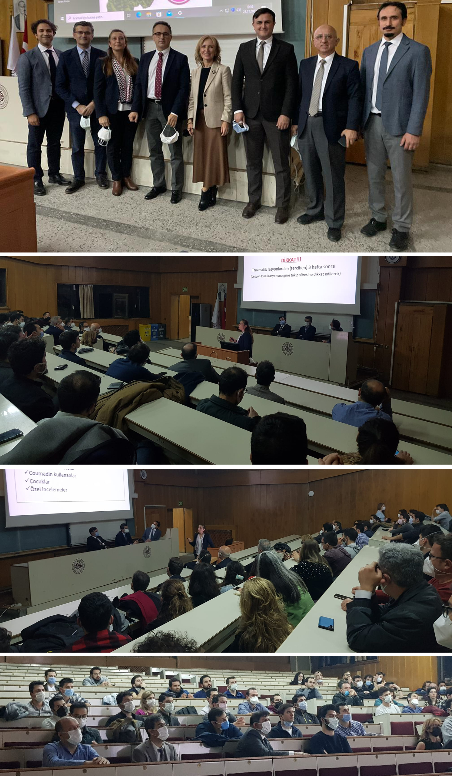 İstanbul KBB BBC Uzmanları Derneğinin “Travmatik Fasiyal Paraliziye Yaklaşım” konulu Kasım ayı toplantısı İstanbul Tıp Fakültesi Kulak Burun Boğaz Ana Bilim Dalı ev sahipliğinde yapıldı. Açılış konuşmasını Prof. Dr. Nesil Keleş’in yaptığı toplantı Prof. Dr. Serkan Orhan moderatörlüğünde gerçekleşti. Toplantıda Prof. Dr. Elif Kocasoy Orhan, Doç. Dr. Beldan Polat, Doç. Dr. Mehmet Çelik konuşmacı olarak yer aldılar.