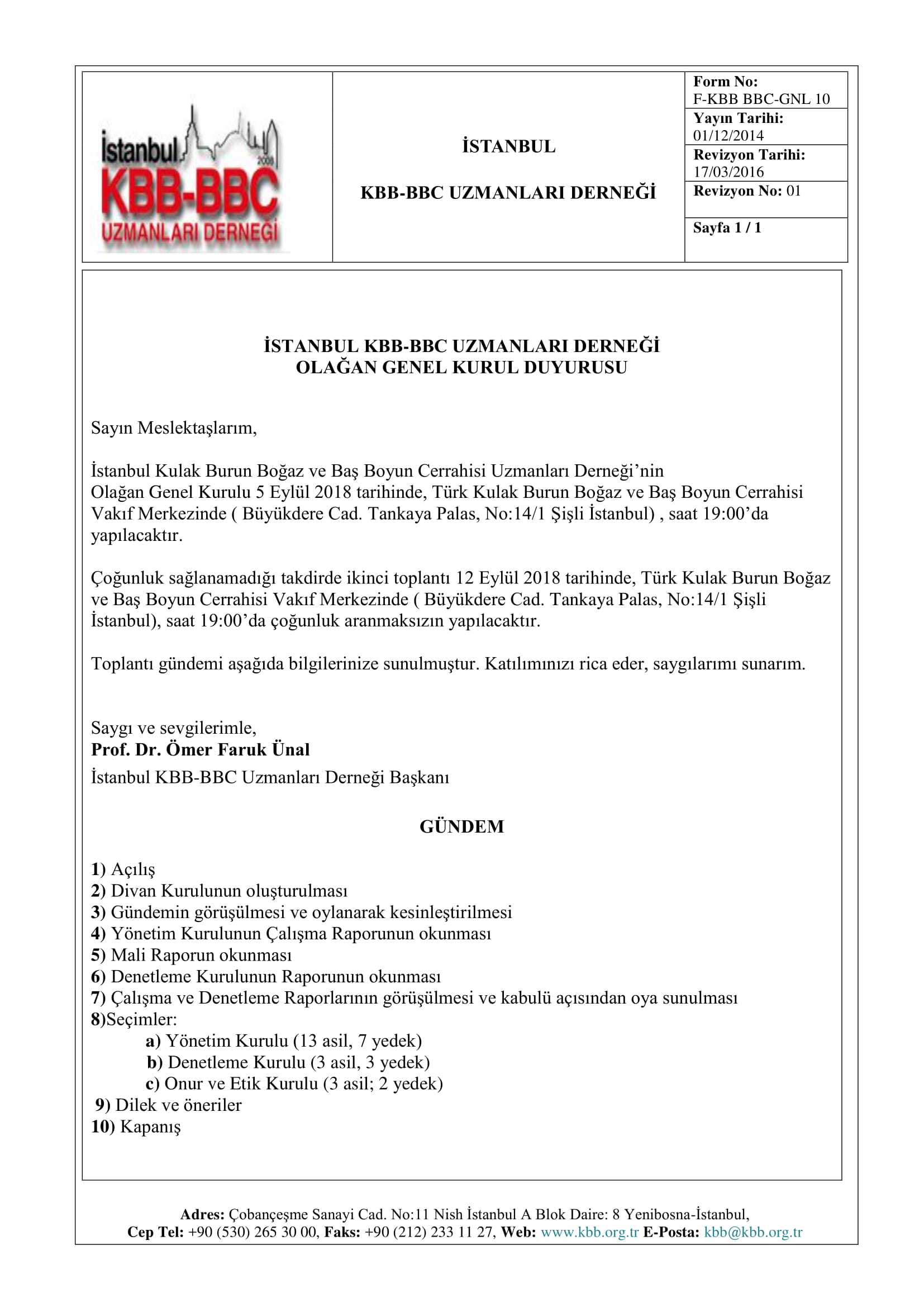 İstanbul KBB BBC Uzmanları Derneği Olağan Genel Kurul Toplantı Duyurusu